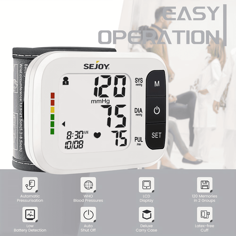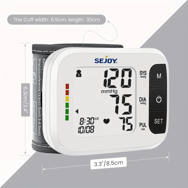 Ce tensiomètre électronique au poignet est conçu pour offrir une mesure rapide, précise et facile à lire, adaptée à tous, notamment aux personnes âgées.